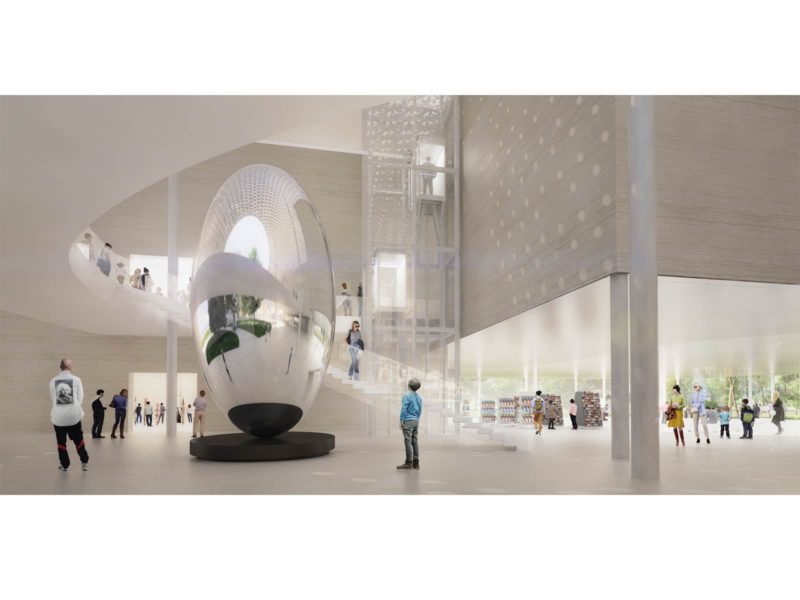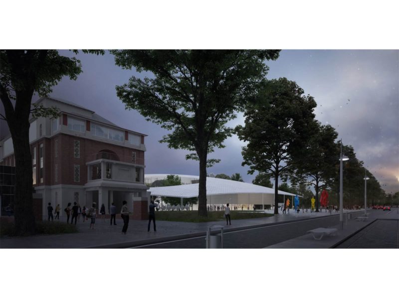 We propose a museum like a park with open areas where people can stay freely and gradually shift from art, nature, and public spaces while wandering through the architecture. We imagine architecture that sits gently on the ground to allow for everyone to criss-cross the site freely and to experience gradually integrating urban and natural atmospheres.